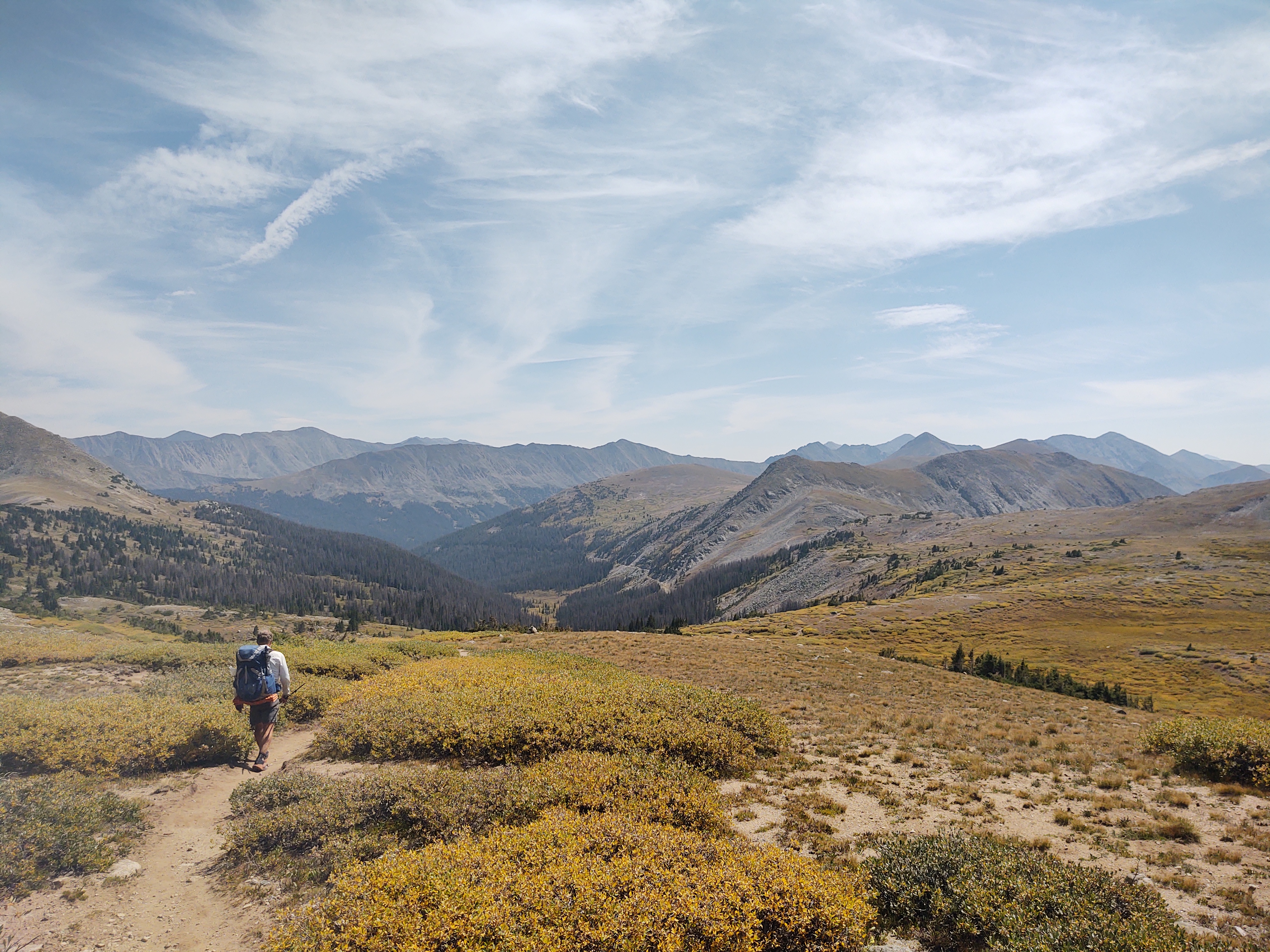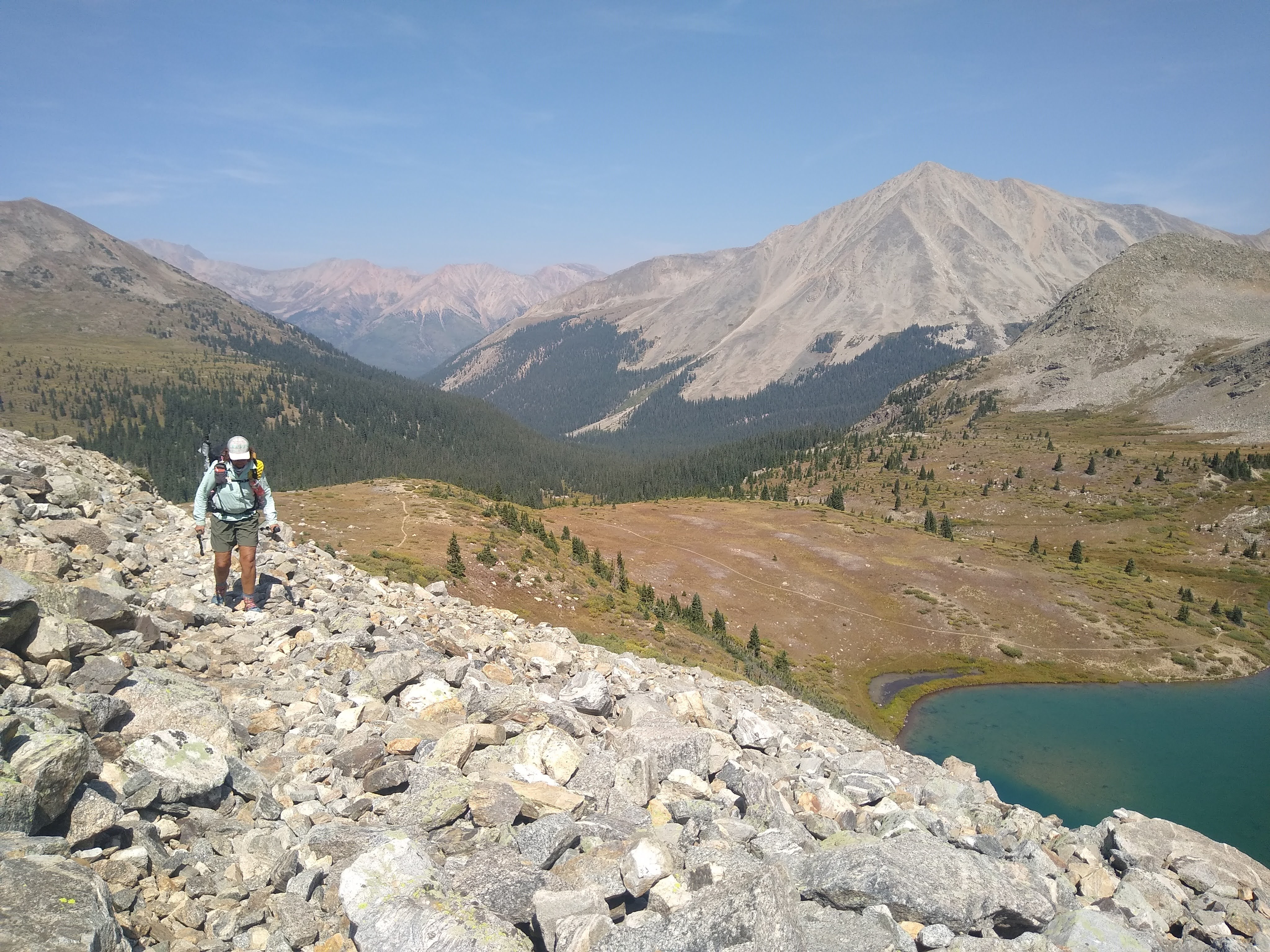 From our camp spot the previous night, we descended to the junction of the Colligate route(s). The next few days were supposed to completely clear, and relatively hot. Because the “high” East Colligate route traveled over 12,000-13,000 ft, and was a practically waterless exposed ridgeline, we elected to travel a less exposed route, with plentiful water. The “lower”/West Collegiate route.