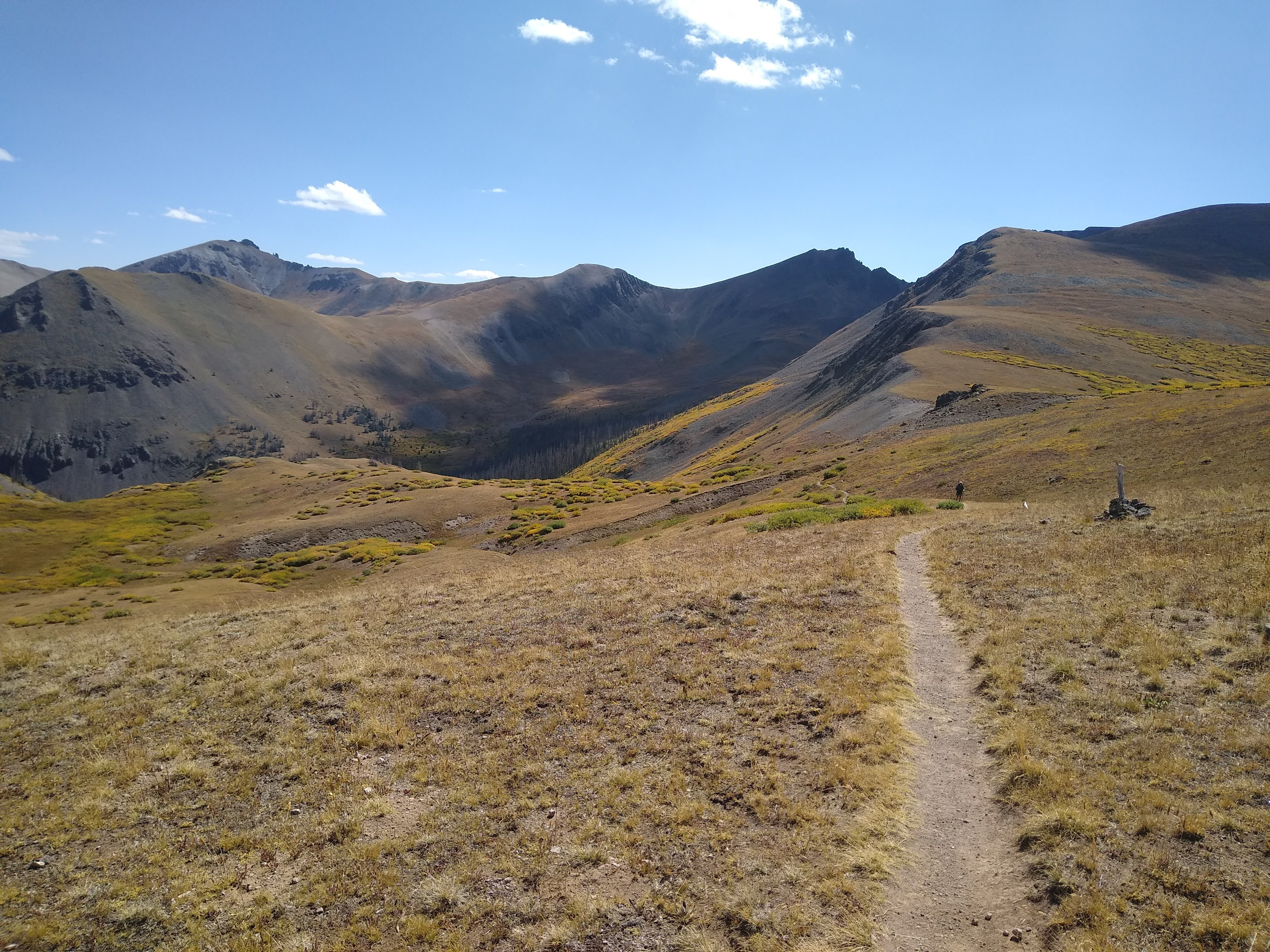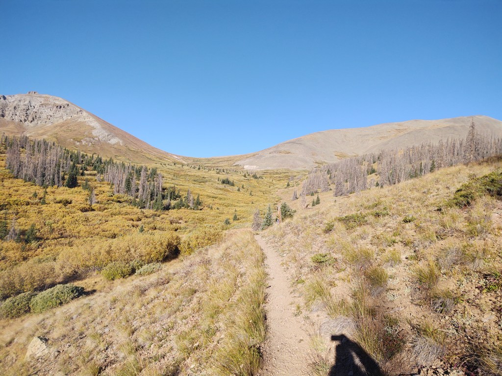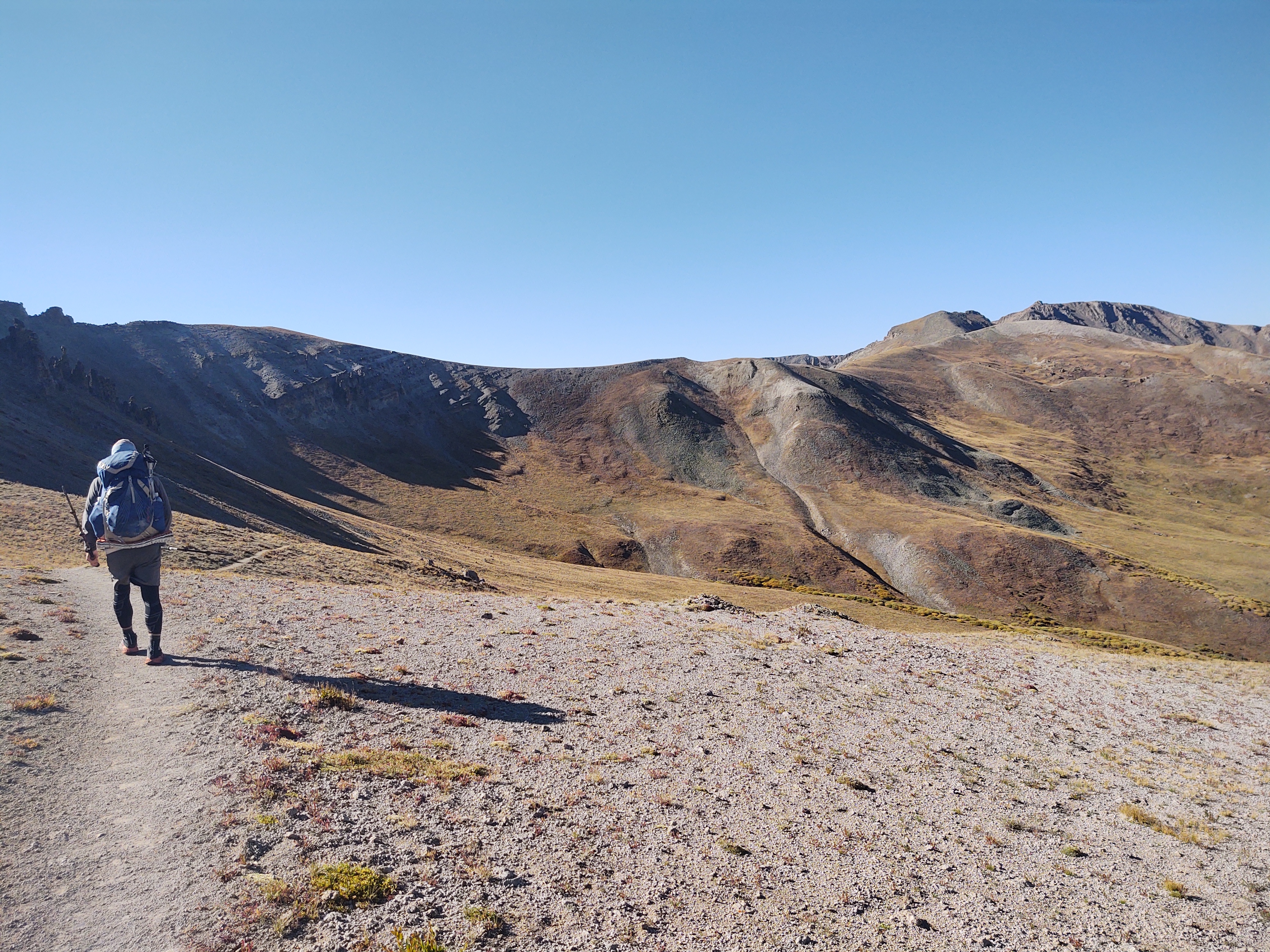 The morning started out bitter cold. We wore everything we had, and were still cold. It didn’t help that the wind was a little brisk AND we had close to a 2,000 ft climb over two saddles (12674 ft/12374 ft) on our way to the Creede Cut-off, for resupply.