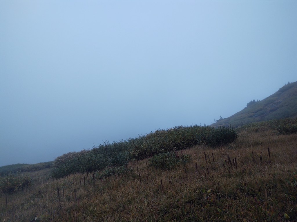 By 7 am the rain had stopped. Only problem, we couldn’t see the trail. We were trapped by a “resting” cloud.