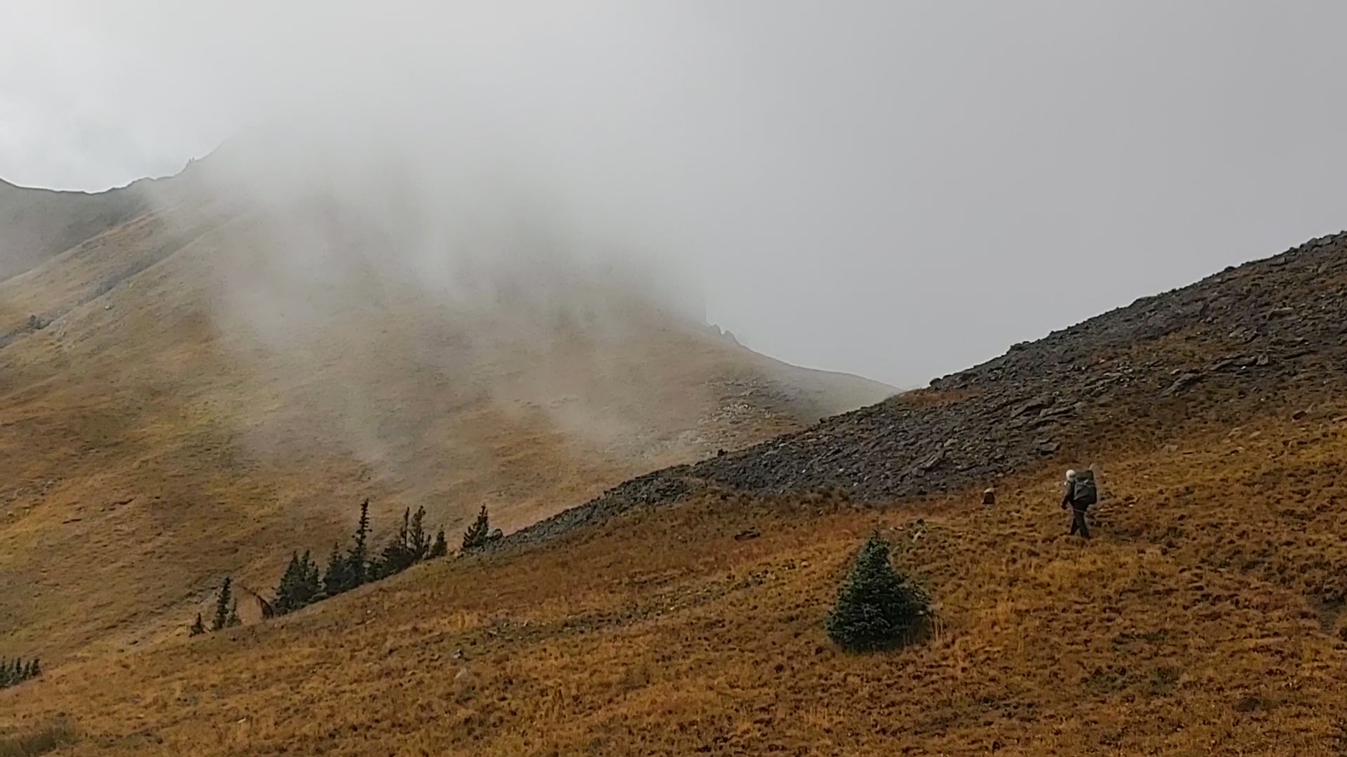 That night, the integrity of our Big Agnes Tiger Wall UL2 would be severely tested. Fully cognizant of the irony of our situation, the black cloud(s) and freezing weather we were trying to avoid, attacked us from all directions. Our tent bucked in the wind. Rain and hail pounded against our fly ALL NIGHT! We would not be surprised if we woke up to snow. For a very brief moment, the rain and wind stopped long enough for us to escape and empty our swollen bladders. This was because the cloud itself, had decided to park itself, and take a “breather”, directly upon on. Our headlamps nearly blinded us as the light bounced off the thick white mass that surrounded us, as we exited our tent.
