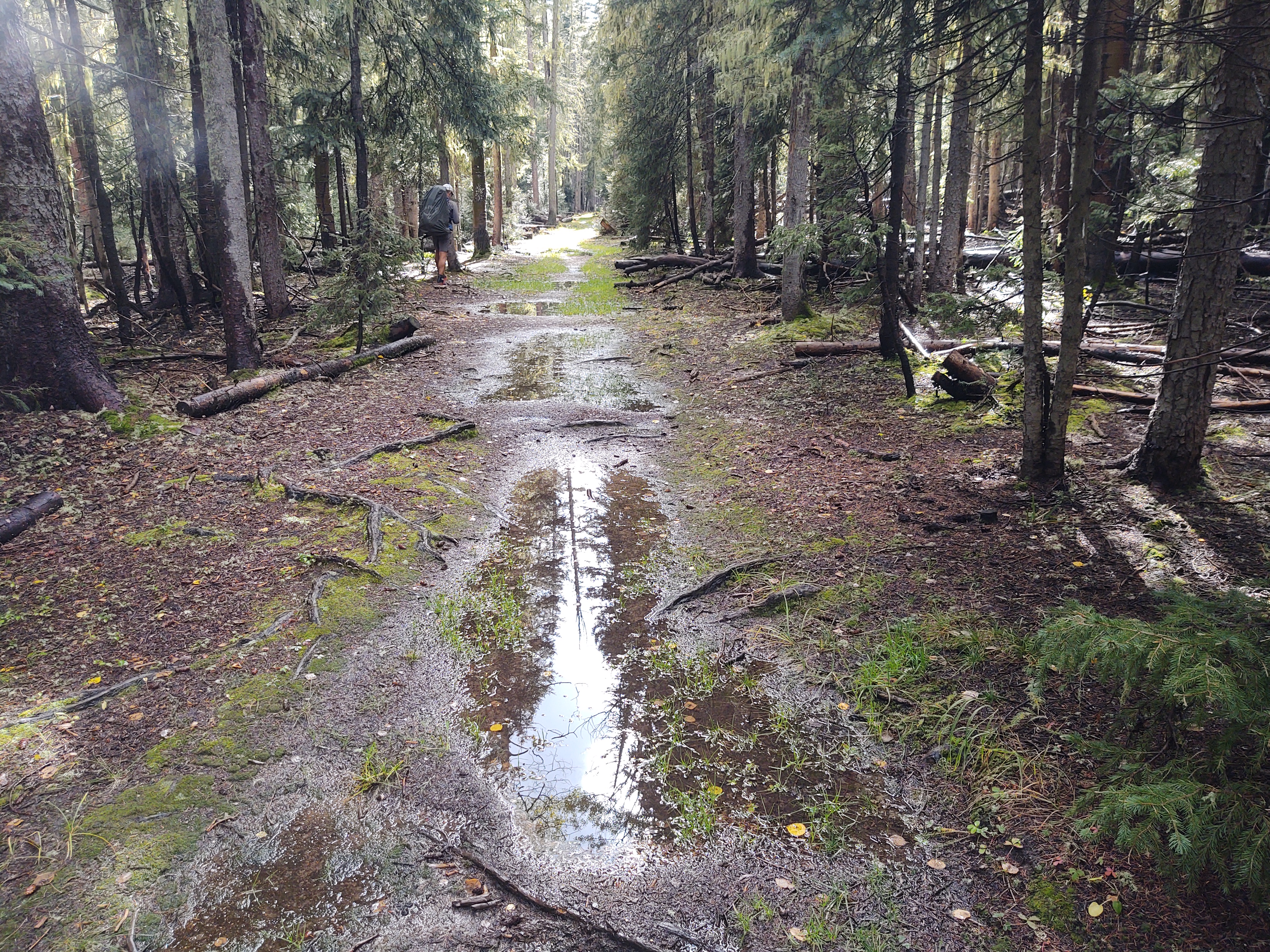 With the exception of being rained and hailed on, it was a near perfect day. Hell it WAS a perfect day, because as we were getting water near the San Gregorio Reservoir, who should come around the corner, but our friend Jan (SheepGoat). Last we saw him was just before the Bob Marshall Wilderness. He had hiked like a madman to catch up to us. It was because of the fires near the Idaho/Montana border and the “Butte Cut-off” alternate route that he was able to mitigate the miles we had done last year. He also is a bad-ass and stomped out multiple days in excess of 30+ miles with no days off, just to catch us. I guess we could have slowed down a bit…more, but then where’s the challenge in that?