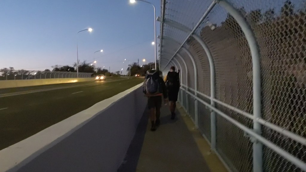 This required a careful slither under a barbwire fence. No wonder people just walk the highway!