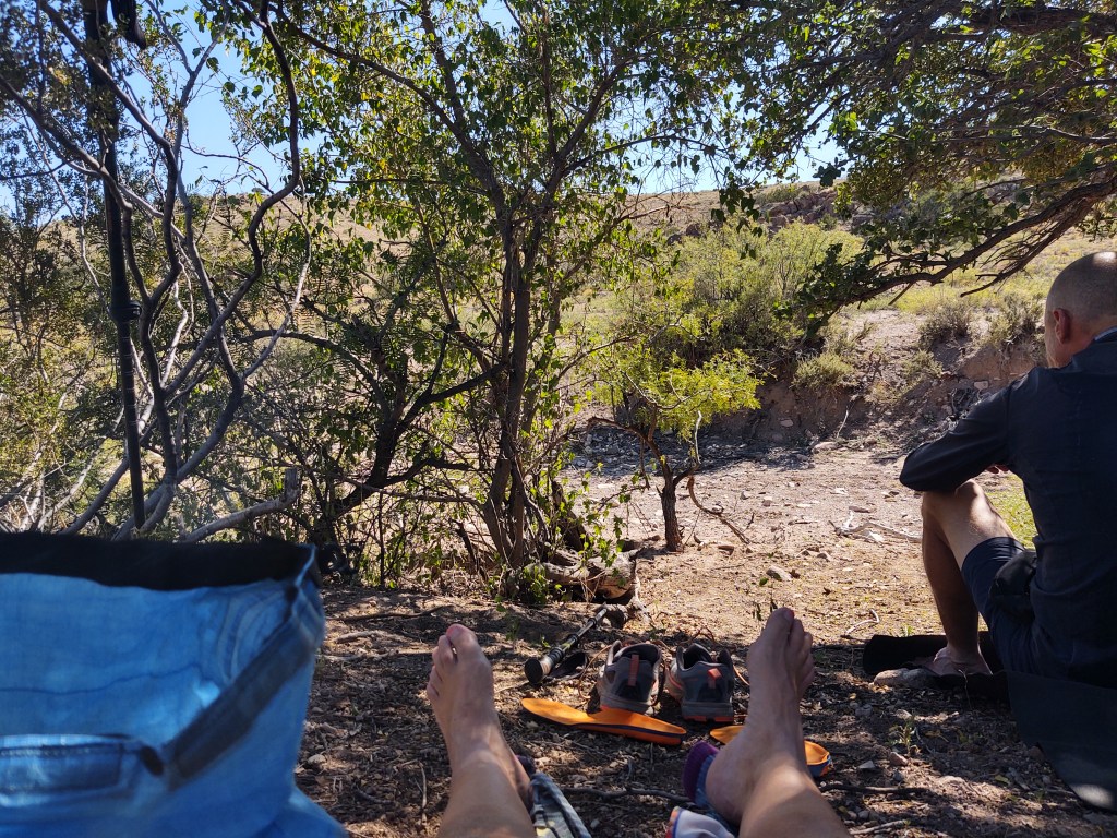 We took our lunch in the shade of a verde tree. We had easily crushed 10 miles and were only trying to do about 20 miles a day. (Namely, because we weren’t being picked up till the 26th.) Even though it wasn’t that hot, it was a nice little break in the shade. We also enjoyed a nice little breeze, and thusly makes walking under the bright sun, not so tough.