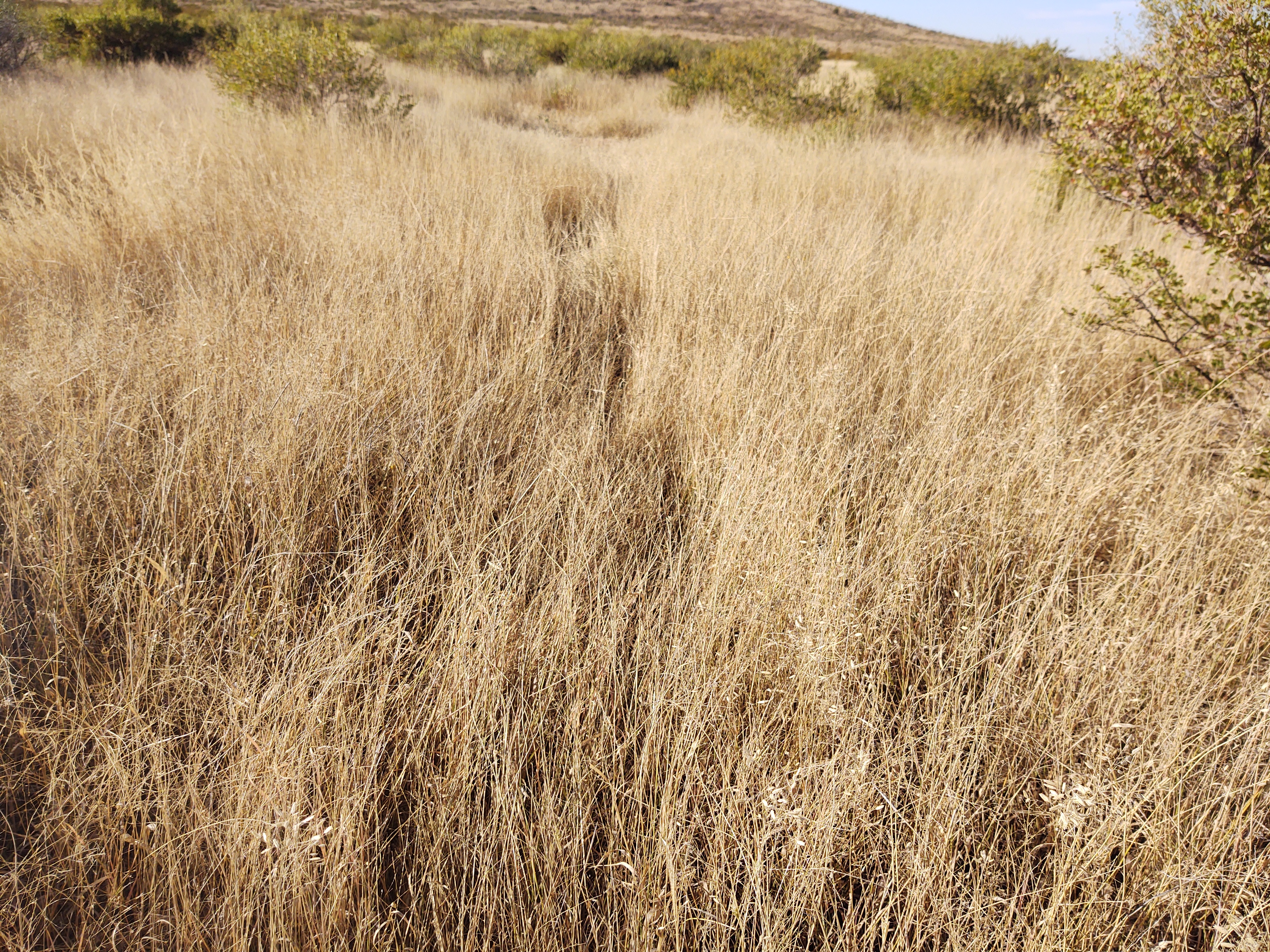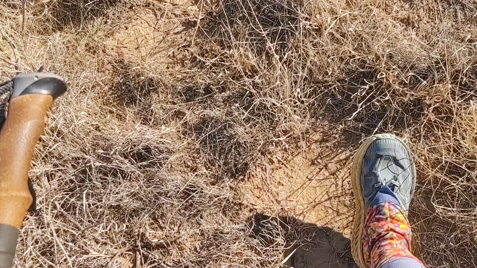 We had to rely on faint tread and smashed grass footprints, and watch for the blue ball on the redline of our Guthook (or rather Far out) app, to make our way. The air was surprisingly crisp. I should have worn my gloves but the tread was easy. So, walking with my hands in my puffy’s pocket was not a tripping hazard.