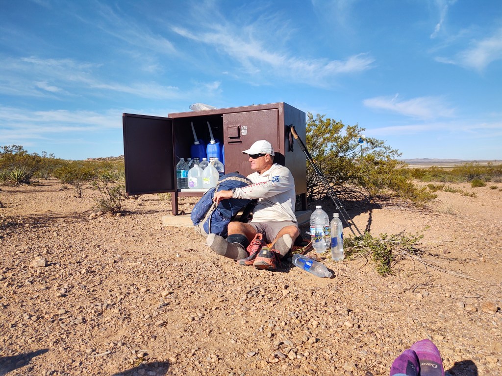 We took a quick morning break at the 2nd water cache, and as luck would have it, another hiker appeared as we were packing up to leave. Poor Jan, this now left him with only three more days for him to have a day without seeing any other hikers (we don’t count).