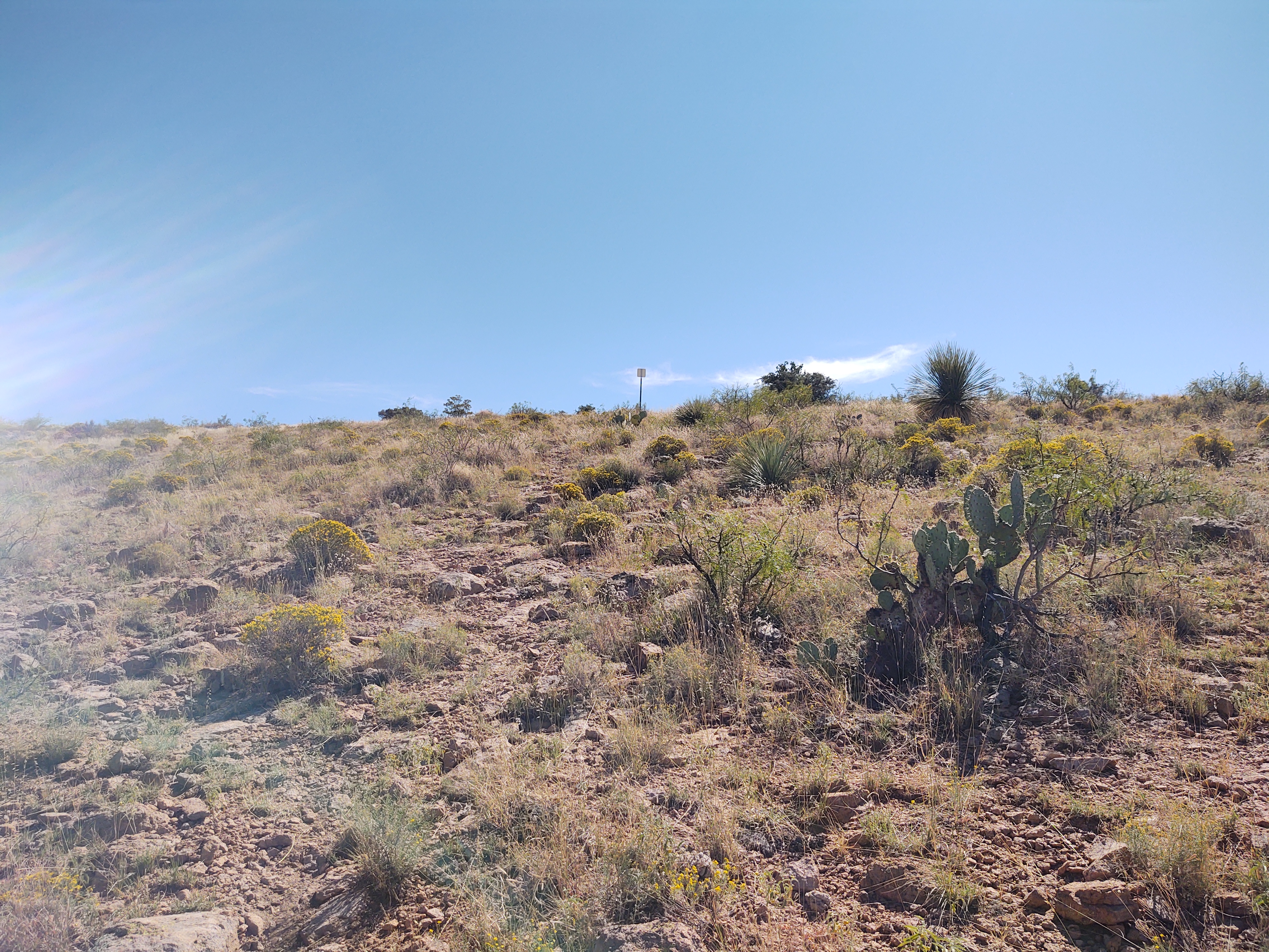 As the sun rose higher in the sky, a more defined foot trail started to emerge. This led to more hiking and less dodging of pokey plants. The signs were still faced the wrong way for SOBOs, but we’d gotten the hang of searching for plain white squares…on sticks.