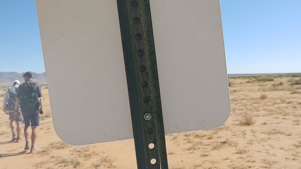 A white square on a stick…with the same background, not so much. We were not surprised by that, considering similar signage ushered you into Lordsburg. They at least, had the courtesy of flipping every other sign to face SOBOs.