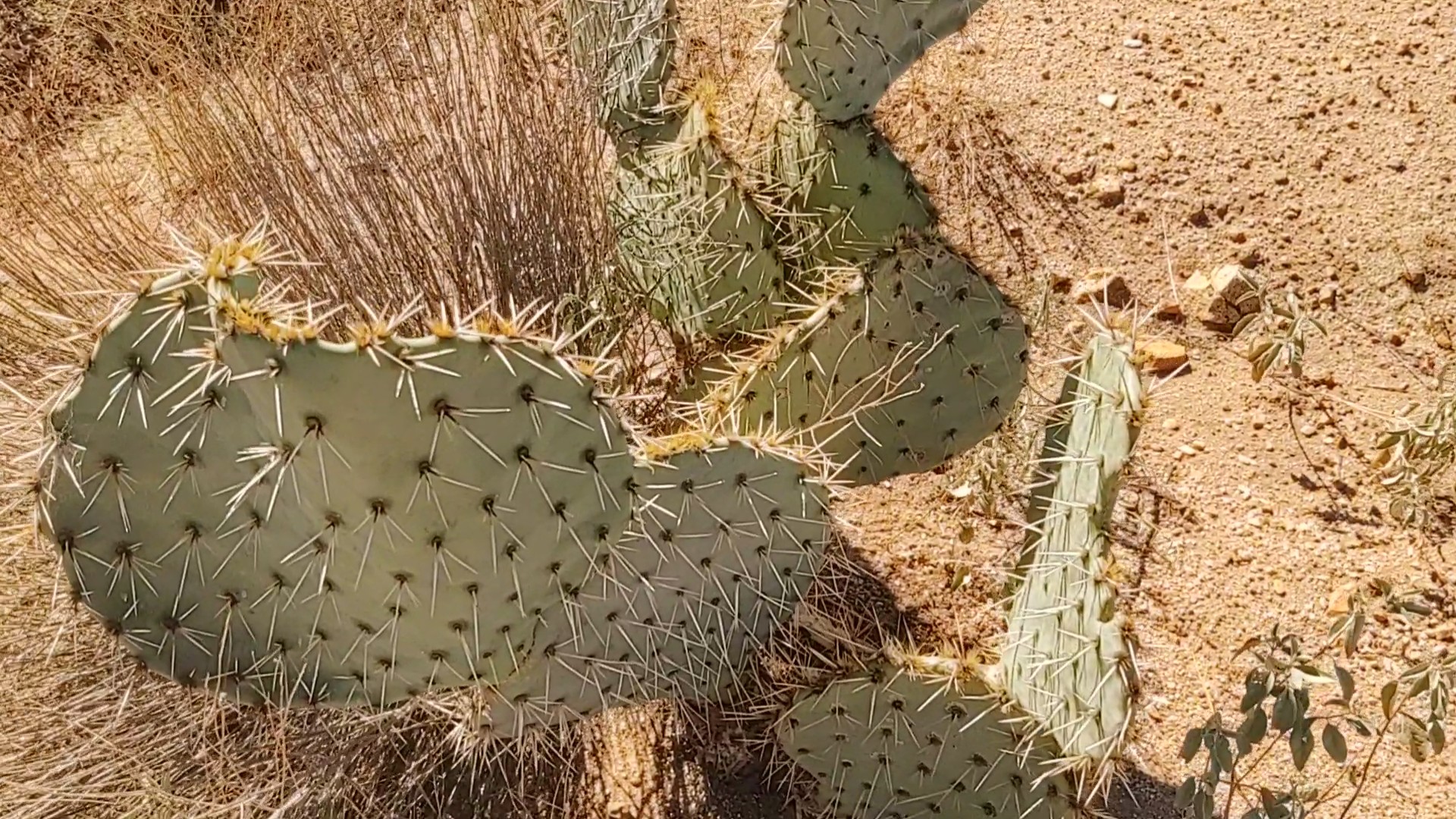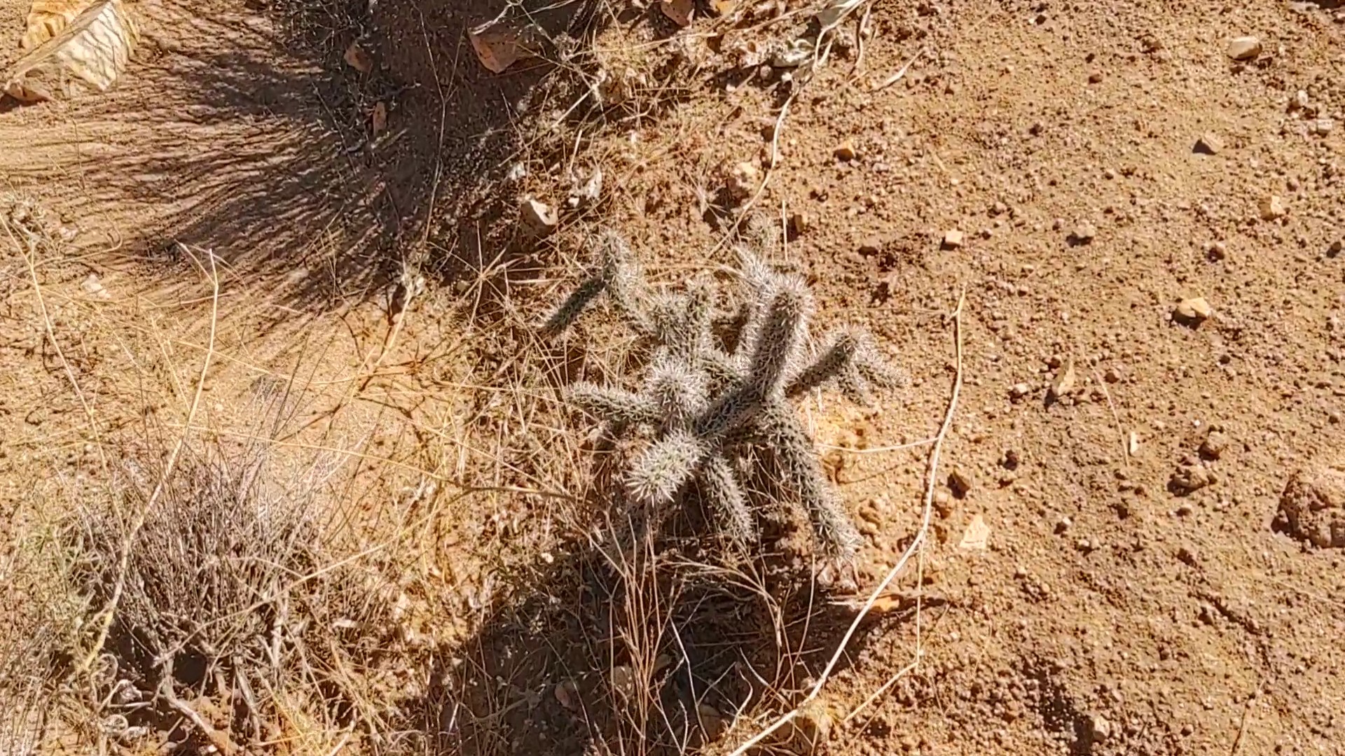 Besides the red sand of Mars, and the gauntlet of pokey plants between the line of CDT signs, we found a curiosity. A mule deer trotted away from us, parallel the trail some 50yds away. How does a mammal such as that survive out here without water? We hadn’t seen a cow all day, and that’s saying something.
