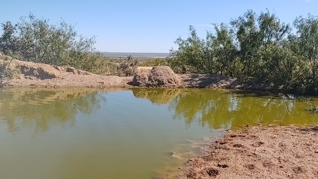 A giant rust red water tank, complete with a “swimming hole”, provided our answer…that is how it survives.