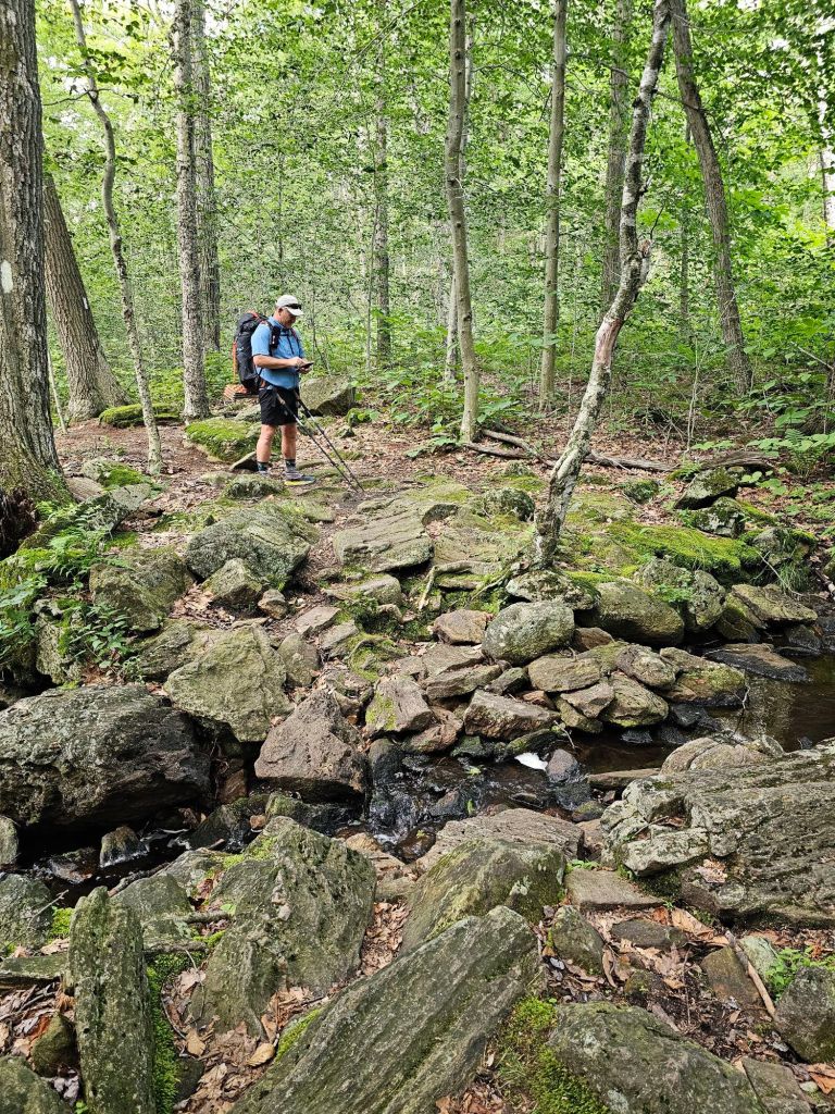 Right on time, Pokey picked us up from McDonald’s. The morning was, and the day looked to be much cooler than the previous week, but it was still unmistakably muggy. We knew the day would include lots of climbing, and we hydrated ourselves appropriately the night before, but one never can tell based upon the humidity and terrain, how bad it will actually be. We have grown a bit wary of heat exhaustion and don’t want to get anywhere near that situation again. Even though it appeared a bit overcast, we could tell that the humidity was even worse than the day before. We were going to be close with our water calculations and the available water sources. Four miles per liter will NOT cut it here. Today is going to be more like 1.5 miles per liter.