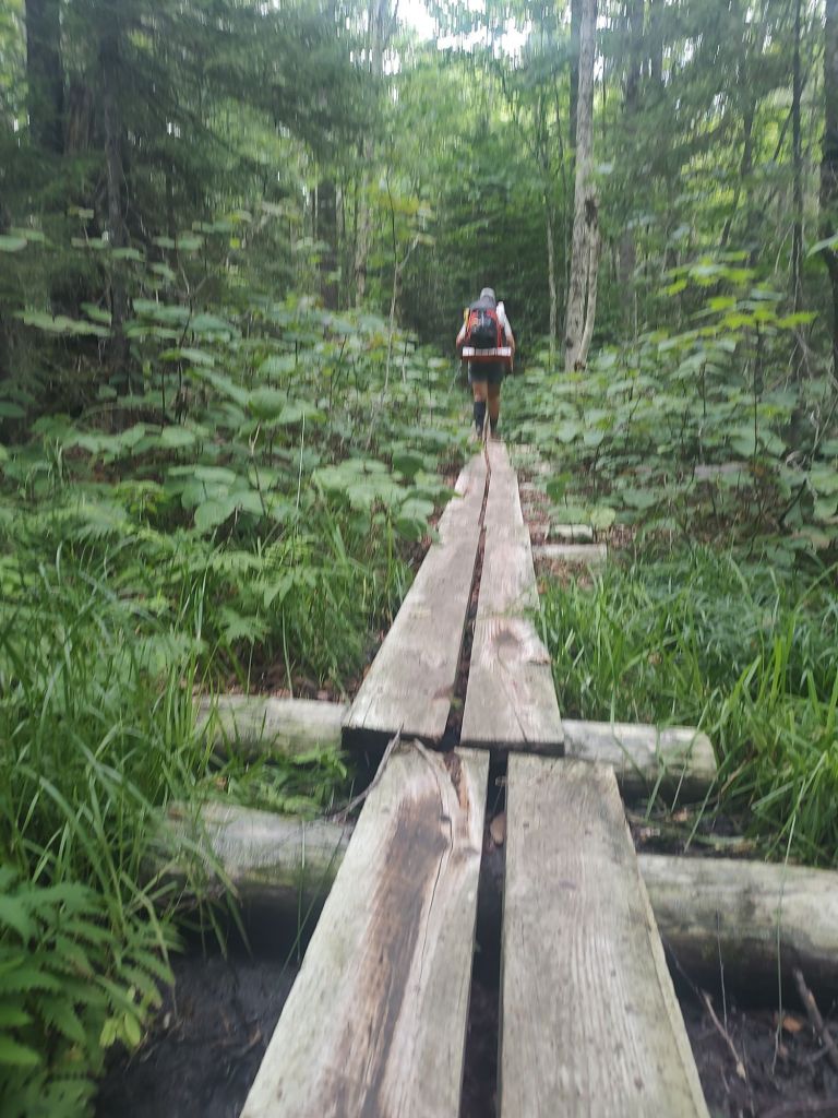 It poured ALL night long. We are so glad we made the decision to motel it last night. I’m pretty sure we would have been wetted out and fairly miserable. It was a bit of a late start, as one can’t pass up a continental breakfast or a ride back to trail. Not to mention, I awoke to looking like a Unicorn. Apparently, a mosquito got me smack dab in the upper forehead. This is gonna make pulling down my hat brim a little uncomfortable.