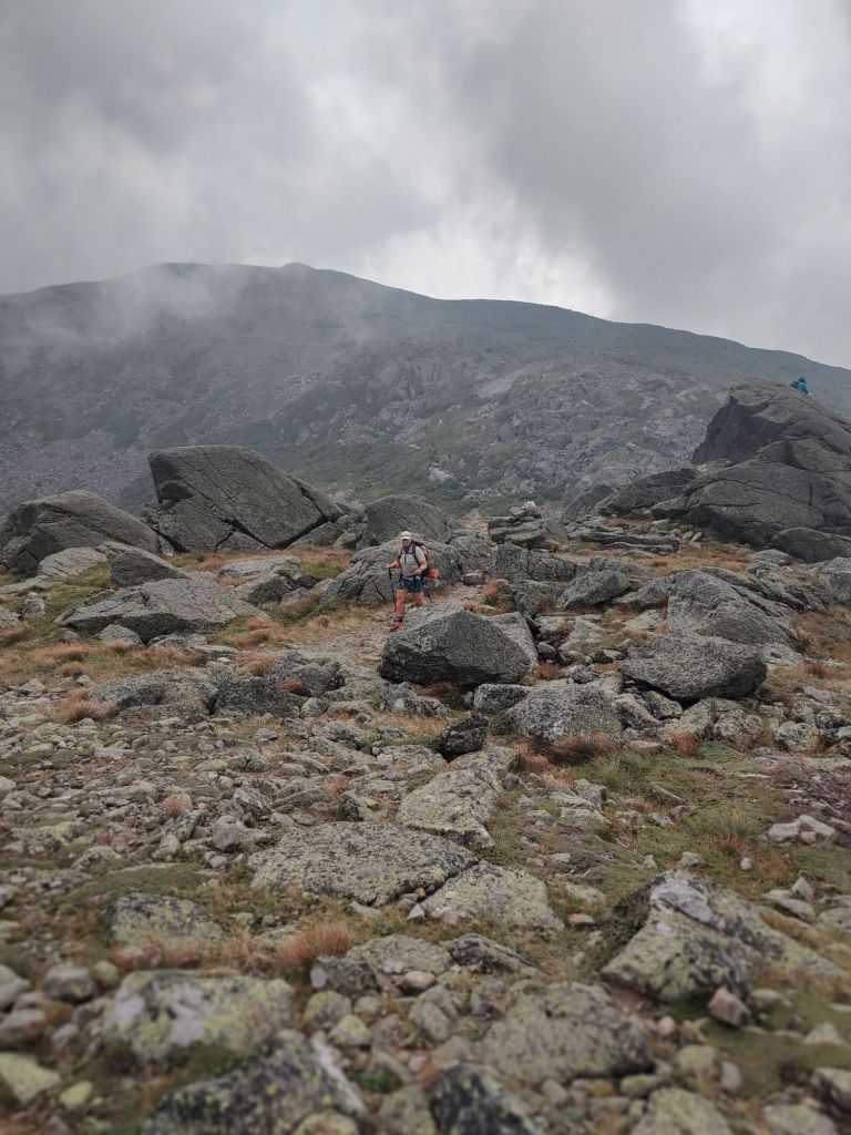 Before long, wisps of clouds started to form on the horizon. It was time to skedaddle. The hike down from Mt. Washington nearly broke me. Nothing but rocks. Some rocks were “organized” enough to pick ones way across without much thought, but most of the descent toward Madison Spring Hut was tedious. We opted not to climb the other peaks along route, as they were not part of the AT.