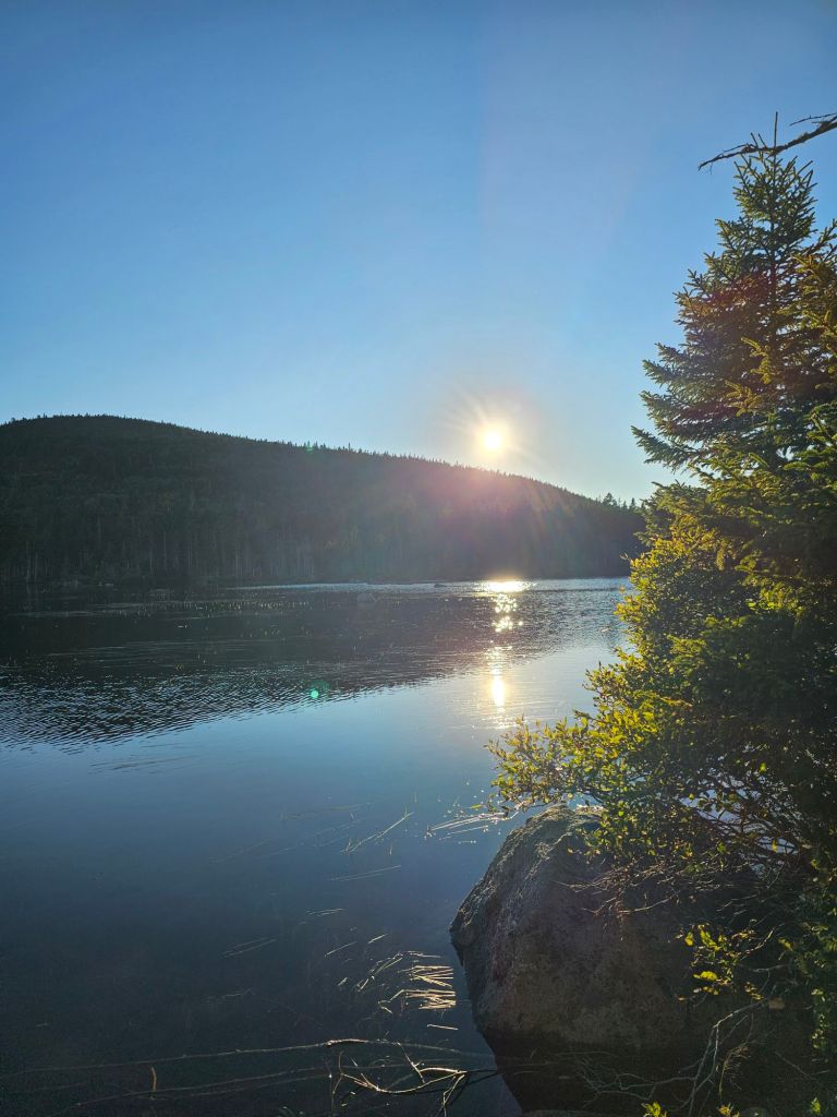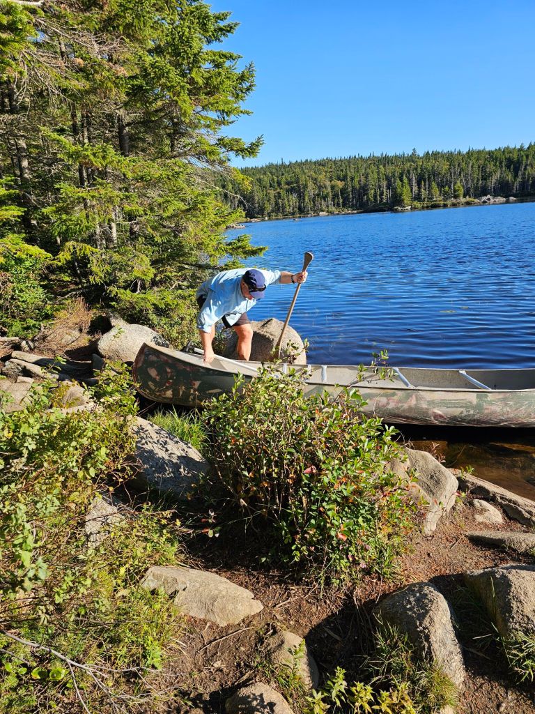On the shoreline, there are canoes, paddles, and actually lifejackets available for use to explore and fish the pond. We set up our tent and then spent the rest of the afternoon paddling about the moderately sized pond, adorned with its own island and beaver hut. The water was calm, and the day was simply gorgeous. Near 2 hours later, Rolling Stone and Scout arrived. We quickly caught up as light was waining, as they also wanted a turn in the canoe. They were searching in earnest for their first moose encounter.