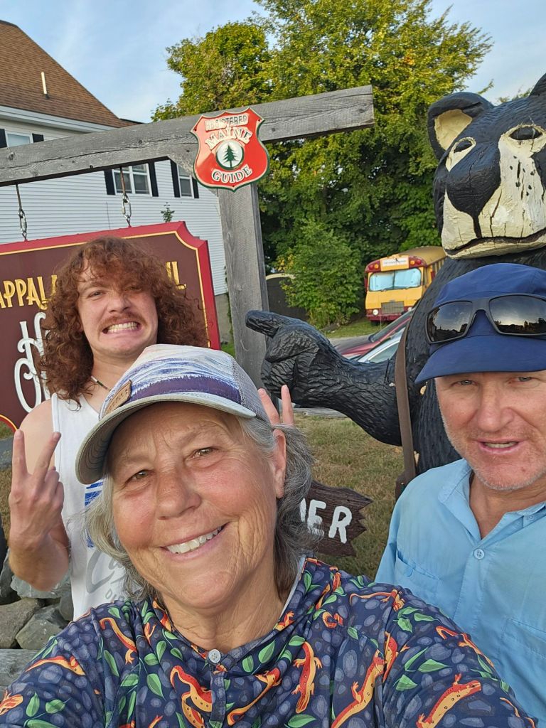 So there was a snafu with the hostel, in that they failed to put us on the list for a shuttle ride to Medway to catch the bus to Bangor Maine. After some searching and a few calls, we secured a ride for the morning with Llyod.Β  As Paul, myself, Sweat Potato and Little Bit were loading our packs into the bed of Lloyd’s truck, who should roll in in a car towing a scamper trailer, but Collosus He had continued over Knife’s Edge and down to the Roaring Brook Campground where he slept under a picnic bench, and then hitched a ride this morning into Millinocket, just in time to get to the bus station. This guy has the best luck. Except for the fact that I forgot to pick up his bag from the Lean-to, like he had asked me to the night before our ascent of Katahdin. Sorry, man. To be fair, he could have reminded me on his way up Katahdin. But being the happy guy that he is, no worries, the hostel will pick up his gear and mail it home to him.