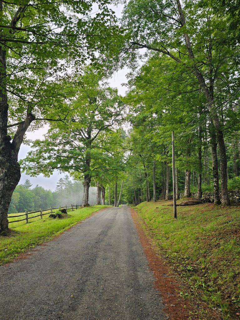 As there was a heavy thunderstorm on the horizon, expected to downpour near 7pm, we hightailed it down the side trail back to the AT. Nope. Foot not happy about that. New plan. Take the alternate in 1.7 and onto a plausibly flat road for a workaround and to relieve the foot pain. Nope. Switch out insoles to “old” Superfeet. Helps a little, but damage has been done. Laces were way too tight for too long with the steep downs and an 8mm drop. Idiot! Hmm. What to do? We finally get to the parking area, which leads to a proper gravel road…downhill, of course. There is no place to camp, so onwards we trudge. Both sides of the road have magnificent homes and some farms, all posted, “Private Property.” We look in earnest for someone peering out a window or perched on a porch, hoping for the opportunity to ask if we can pull up a patch of lawn behind their barn for the night. No such luck.