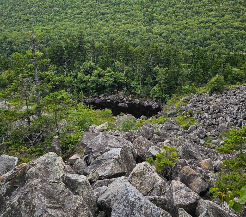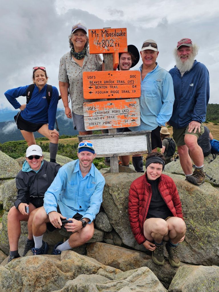 Our initial climb (1883 ft.) was alongside a lengthy cascading waterfall lasting 1.5 miles. The remaining climb to 4802 ft. was “gradual” compared to the hand over fist crawl to the first hut and end of the waterfall. Eventually, we met up with the group we rode in with at the top. Getting to the top reminded us of the CDT and walking Ridgeline. We did not expect to see SO MANY people at the top…besides thru-hikers. There had to be 40+ people scurrying about the top, to include the 1981 alumnus from Dartmouth. One of the group members remarked upon their ascent, “last time I was up here was my freshman year”. Apparently, it is “required” by the Dartmouth freshman to hike Mt. Moosilauke. I’m glad I didn’t go to Dartmouth. While it was nice to have a view (for a brief moment), it was time to head back down the mountain and back to the hostel.