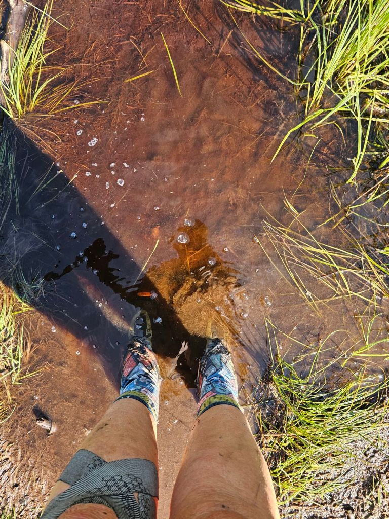 Today was HARD! Wet feet and an uphill scramble over boulders. If it was this time last year, there would be no way I’d be able to have hoisted myself up and over some of these boulders, logs and crags. My shoulder would not have been healed enough to do all that is being required of us.