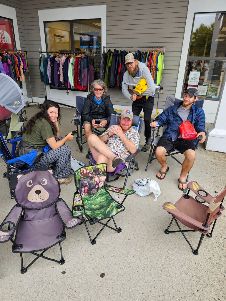 The Knoll Hostel is run by a couple (Doogie and Home Spun) who have opened up their home for the hiking season to 6 lucky hikers a day, 7 if theres a couple who will share the double bed. It’s a full-service hostel that includes, rides to and from Grafton Notch, laundry, shower, and a family style dinner for $75/pp. They have converted their “finished” basement into a dormitory of sorts. It’s a great vibe and total relaxation. They even lent us their car to run our town chores. While shopping for resupply, we ran into our “crew”.