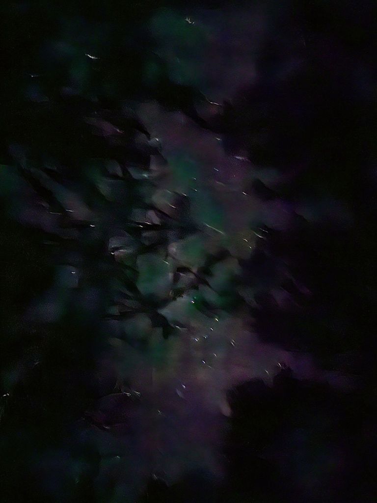 We camped next to an old rock structure that appeared to be a settling pond for livestock or irrigation. Sounds of joyfully screaming voices with a bass beat in the background ebbed and flowed through the evening and into the night. A cacophony of explosions and their rhythm in the near distance indicated a fireworks show was nearby. Our map showed a Merriwood Camp in the vicinity of the noise. It must be the final night send-off for the week’s campers. We wish we could have at least seen the fireworks. Sadly, we couldn’t even see our hand in front of our face.