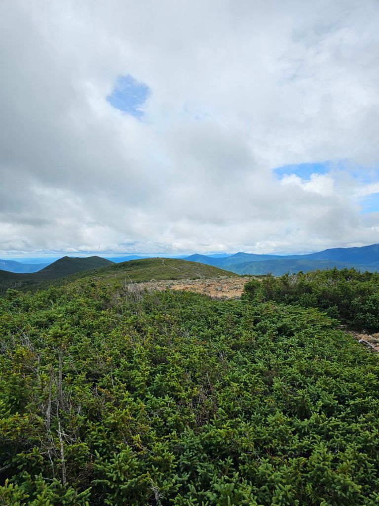 As we were starting a bit late, and we’re carrying 4 days of food, we had initially thought we’d stop at the Liberty Springs campsites, run by the AMC, but then decided to save our money and continue on till we found a good stealth site. We found a place tucked away in the trees and just after the bulk of the climb to Little Hatstack Mountain. This would set us up nicely for the following morning. Little Haystack Mountain(4780 ft.), Mt. Lincoln(5089 ft.), Mt. Lafayette(5260 ft.), and Mt. Garfield(4467 ft.).
