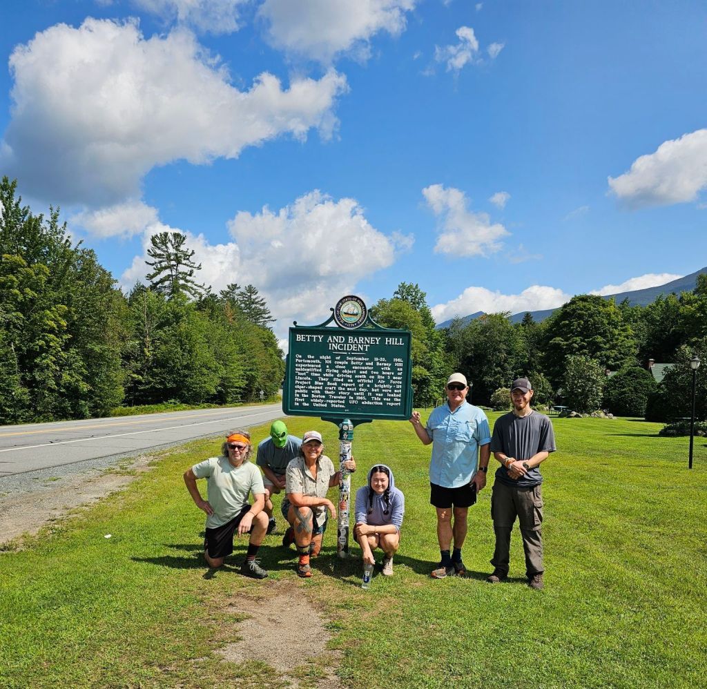 On the way to our drop-off point, our hosts stop by a famous New Hampshire icon. An alien abduction site. Photo ops for all, as Jen tells us the story.