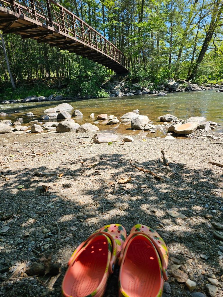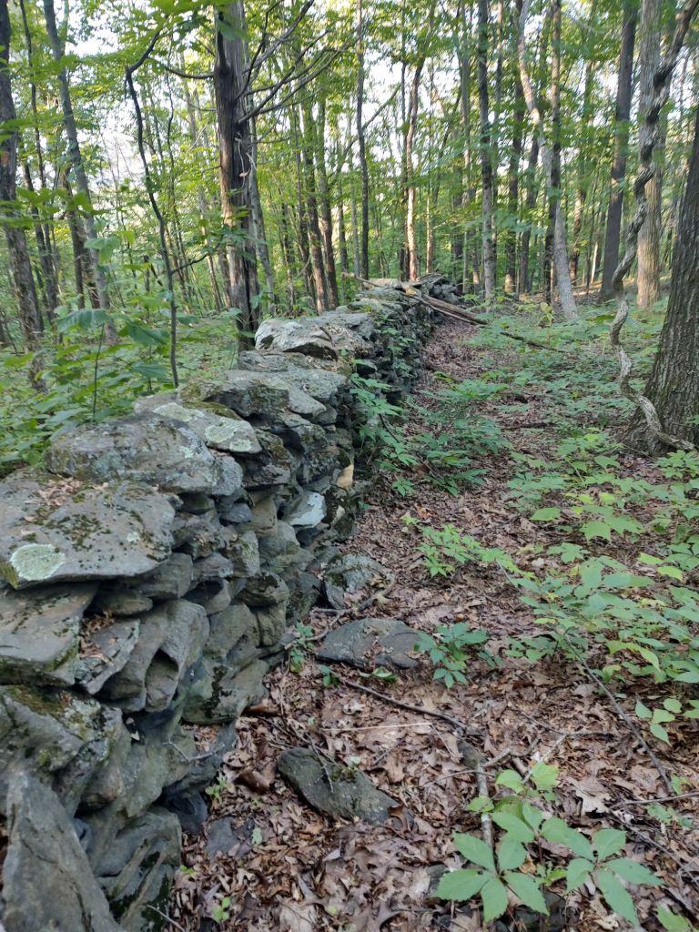 The morning walk took us past storied rock walls in various stages of decline, as we traveled through the lush greenery, and then dropped down to water, before it climbed to the Wiley shelter, where we spoke briefly to a NOBO hiker, “Catch-Up”, who had started in April. We carried on our way, and then in no time were passed, as we expected. Oh to have hiking legs. We made fairly good time, and took a nice break around 1030 a.m. at the 10 mile bridge. We apparently missed the memo that you’re not supposed to drink from that river. Oh well.