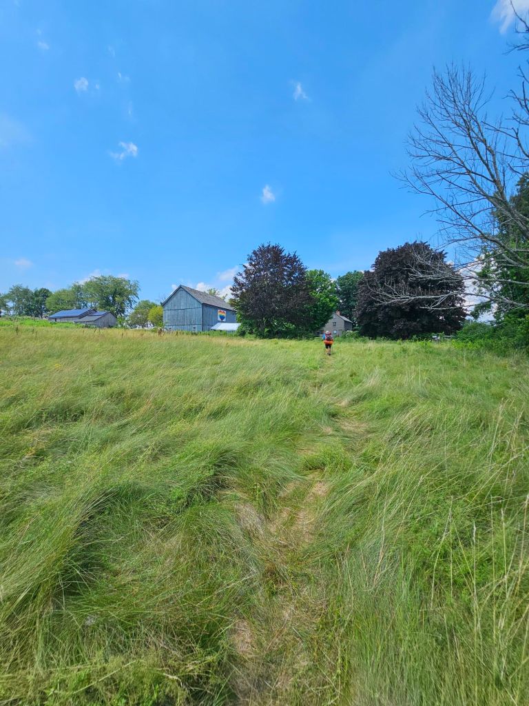 Our major climb was first thing in the morning, up to Mt. Everet (2602 ft.). While the ups were not so bad, the downs were difficult on the knees. Most of the trail was not difficult, but the heat and humidity was draining. If it wasn’t for coming upon the April Hill Conservation Center, home of the Greenagers, I’m pretty sure we would have succumbed to heat stroke. We knew we were approaching heat exhaustion with our excessive sweating and unmistakable nausea, even though we were downing water and electrolytes. It’s just that we were starting to lose the battle. And as we approached a road crossing, what to our wandering eyes should appear, but a group of kids in gum boots lined up like little ducklings following the leader from the direction of a giant blue barn with a rainbow heart painted on its face. We asked their leader if he knew where the closest water was. He directed us to the barn, where we could sit in the shade and refill our dwindling water bottles. Originally, we had been racing to a road crossing where we were told they serve cheese burgers and sodas, but only till 3pm. While we had enough time to make it there, we knew we didn’t have enough water and/or energy to make it there alive. Thus, the pivot to the rainbow heart barn.