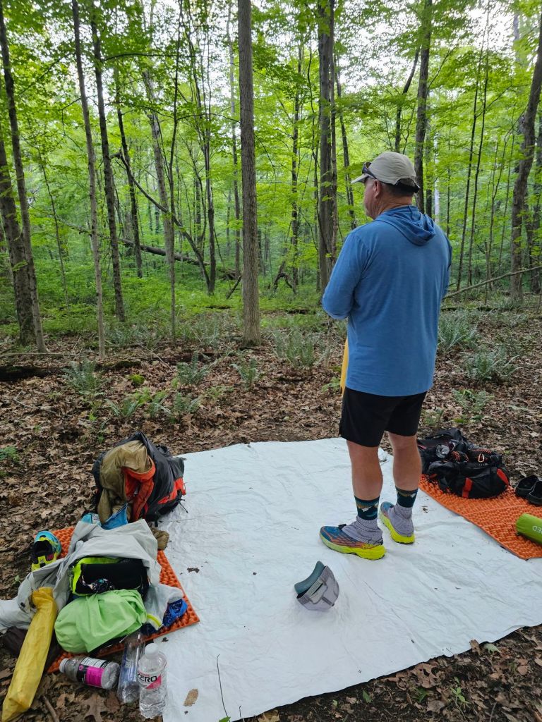 The trail was 50/50. Some good. Some awful. The awful part was NOT good for my already inflamed foot. We managed to take regular breaks to manage the pain and had our first breath of sustained sunshine and a “yard sale” to dry out a sopping wet tent and ground cloth.