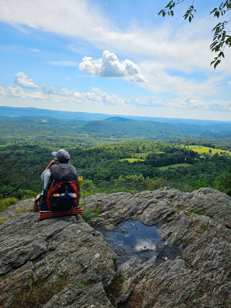 As we have actually now passed into Connecticut, there is NO dispersed camping allowed. Thus, one has to time their day’s mileage with shelters or approved campsites (privy, bear box, adjacent water). Most of the day is spent climbing with nary of view, with one exception.