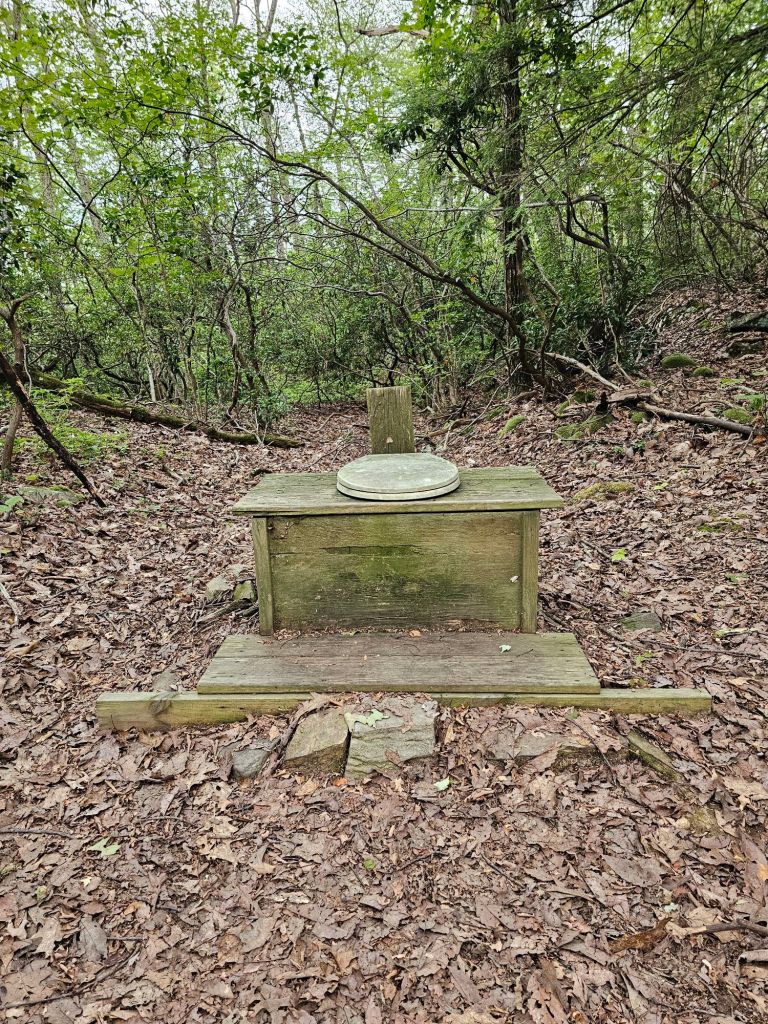 The campsite we go to has several large sites, a bear box and a privy with a view. We set up. Change out to our sleep clothes, and get ready for a dehydrated meal. Thinking we have the campground to ourselves, we drop our packs into the bear box. No sooner do we do that, but two other hikers, “Coyote” and “Catch-Up” (true to her name) shuffle in. Time to retrieve the packs and just leave the food bags. We won’t make that mistake again. Sleep comes easy once again.