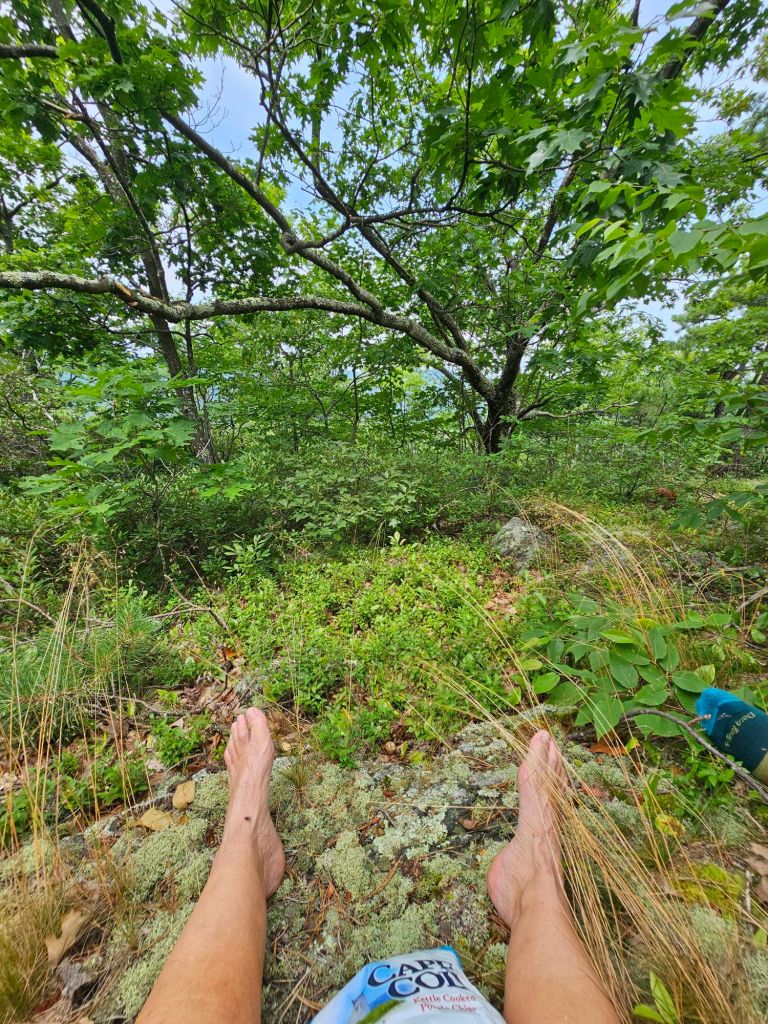 Back on my feet, I didn’t even bother to dust myself off. What’s the point. We snacked at Harmon Hill and called Maria to shuttle us to the Bennington Walmart. She’d meet us at the Hwy in a black Jeep. Our final descent to Hwy 9 was rigorous in the fact that it appears that short people, or people with impaired knees, do NOT build steps or are at least not consulted. Oh, to have trail legs. We made it to our ride with several minutes to spare with our proposed estimated arrival.